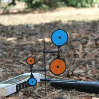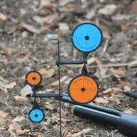 A must-have for gun enthusiasts, these reactive metal targets elevate outdoor shooting games with your gun buddies, whether on a farm, at a campsite, or just in your backyard. It is compact, making carrying and setting up easy. et up with two target spinners in one, this target is mounted on the ground. Convenient to carry Made from steel with a corrosion-resistant coating. Come with 2 target sizes: 85mm and 45mm. Overall size: 16 inches
